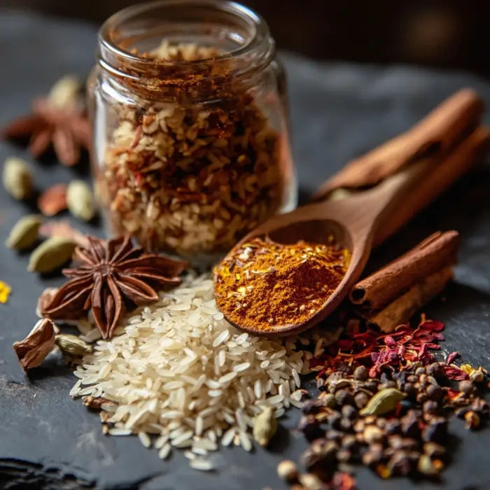 Royal Biryani – Fragrant, regal, layered with cardamom, cloves, and saffron vibes.