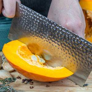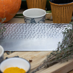 The flat, sturdy blade is more than just a cutting tool—it doubles as a crusher for herbs and nuts and makes ingredient transfers seamless. The hand-hammered Tsuchime pattern not only adds a traditional aesthetic but also enhances functionality by reducing friction during cutting.