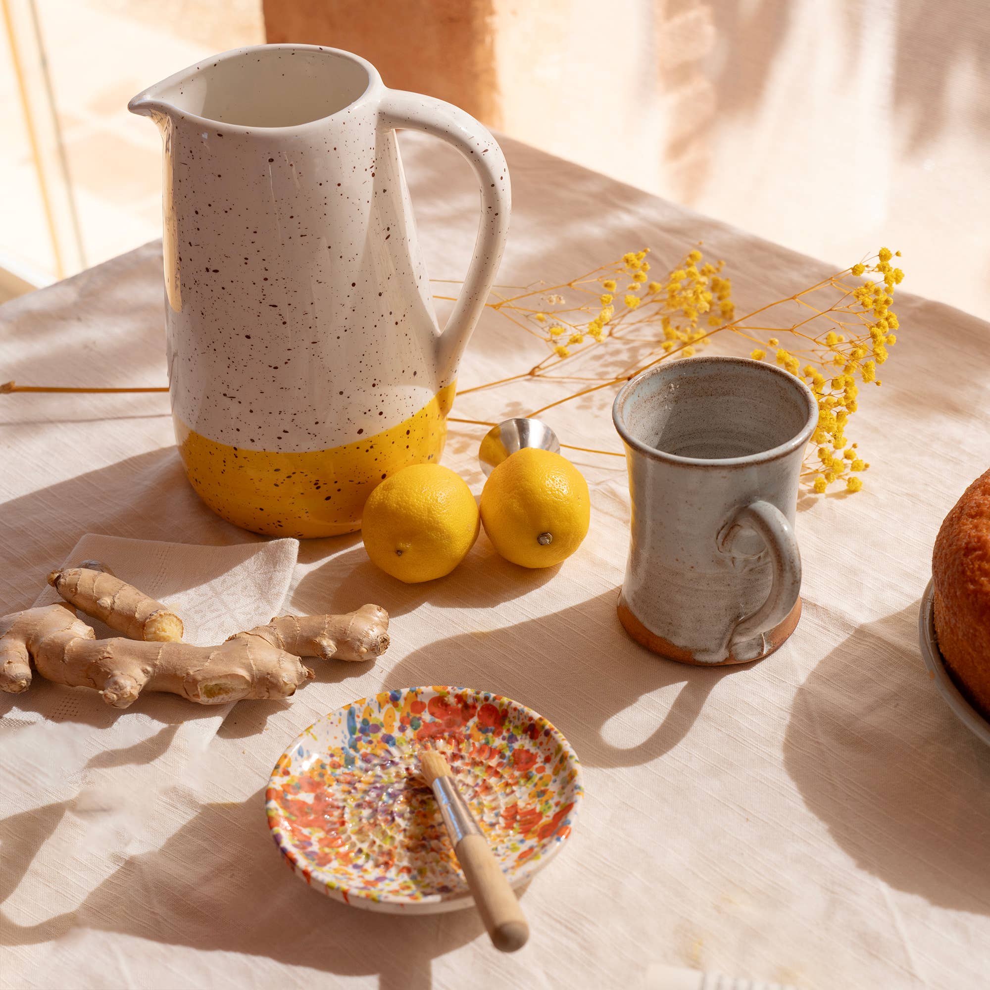 Handmade in Spain, each jug features unique color variations and is crafted with lead- and cadmium-free enamels, ensuring eco-friendly and food-safe use.